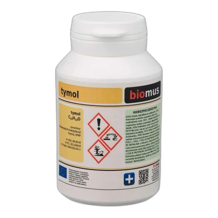 Substancja 2-izopropylo-5-metylofenol jest jednoznacznie identyfikowana przez numer CAS 89-83-8, wzór chemiczny C10H14O, nazwa łacińska Thymolum. Powszechnie znana również jako: tymol. Te identyfikatory pozwalają zweryfikować autentyczność produktu w międzynarodowych bazach chemicznych takich jak PubChem (NIH/NLM) oraz Common Chemistry (CAS). Każda partia produktu opatrzona jest dokumentacją zgodną z wymogami REACH (WE) nr 1907/2006.